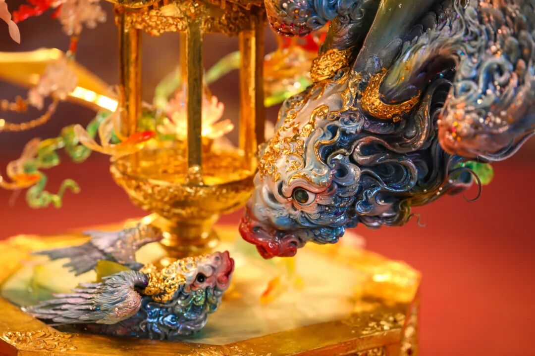 要用糖来传递感情,没有听起来那么简单。首先考验的,就是创作者是否理解这个人物。周毅选择把自己泡进书中。在制作《幻鳐飞羽》时,他翻看过敦煌画师的画作,感知到飞天的佛性,圣洁又恢弘,因此决定用更高雅的颜色。他也读了《山海经》,知道了文鳐鱼是白头,身上有苍纹,神鱼还有防疫的吉祥寓意。甚至,他还去看京剧,想学习大气角色的扮相。