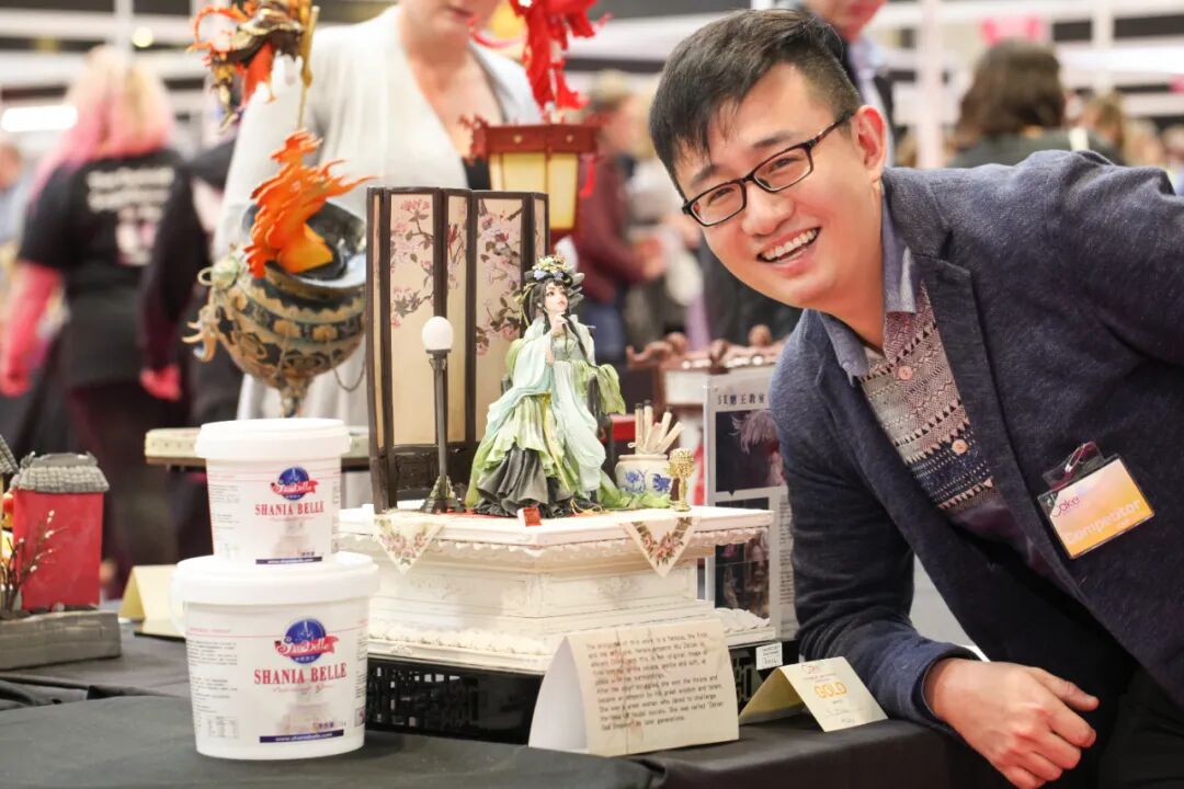▲ 周毅在国际大赛中展示自己的国潮翻糖。图 / 受访者提供