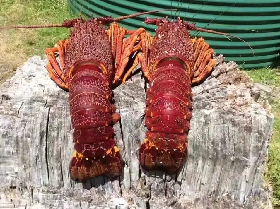 ▲ 打工换宿的男主人的儿子从海里抓上来的野生龙虾,煮熟了大家一起吃。图 / 受访者提供
