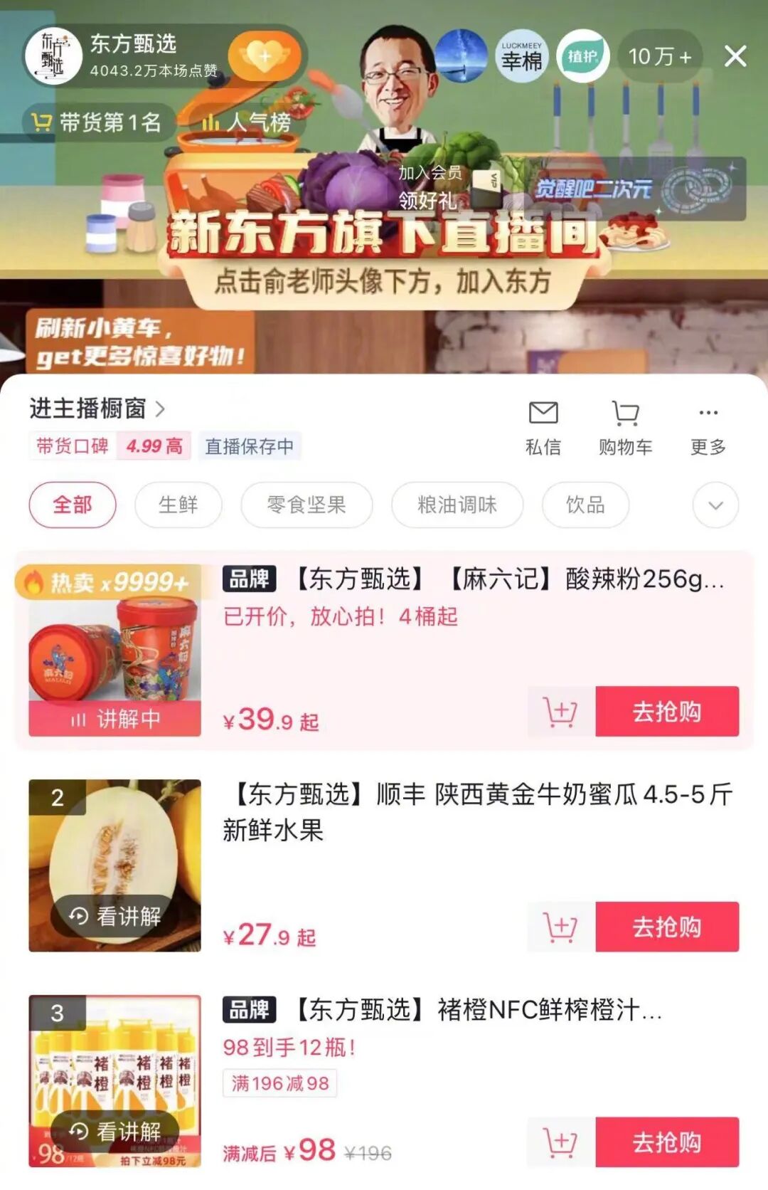 ▲ 麻六记酸辣粉也出现在了东方甄选的直播间里。图 / 微博