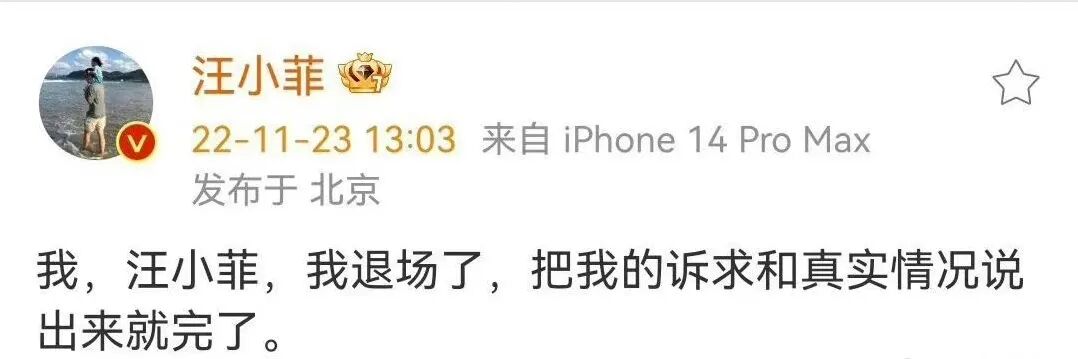 ▲ 11月23日,汪小菲表示要“退场”。图 / 微博截图