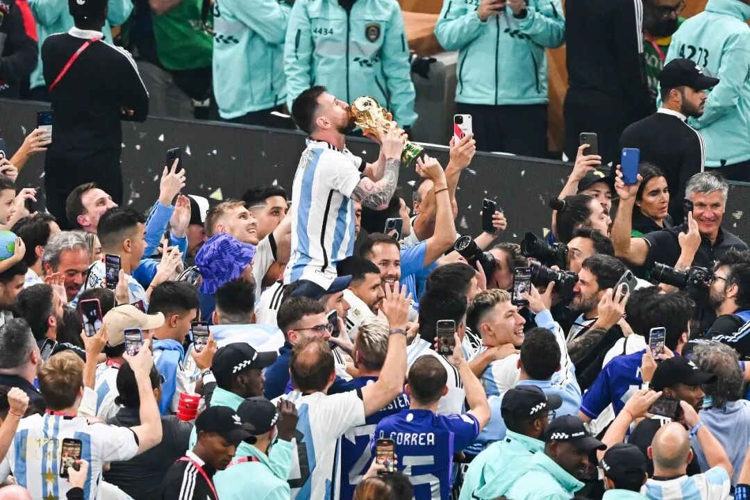 ▲ 阿根廷夺冠,梅西亲吻奖杯。图 / 视觉中国
