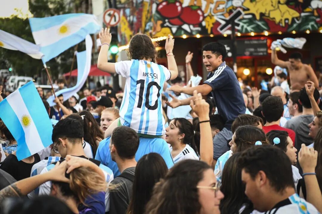 决赛前,这种情绪到达了顶峰。当闯入决赛圈的号角传入潘帕斯草原,阿根廷迅速变成了蓝白海洋,人们穿着统一的10号球服走上街头呐喊庆祝。12月16日,阿根廷布宜诺斯艾利斯的机场挤满了球迷,准备飞往卡塔尔,航班还没起飞,人们已经按捺不住,尽情歌唱。有媒体报道,目前卡塔尔已经聚集了至少5万名阿根廷球迷,最便宜的决赛门票,也被炒到超过4000美元(约为人民币27892元),而最贵的门票则高达14000美元(约为人民币97624元)。而在阿根廷当地,球迷甚至举行了示威活动,要求阿根廷足协帮助他们拿到决赛门票。