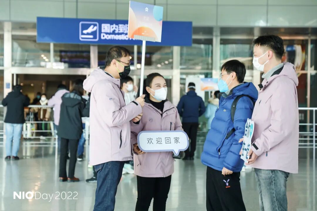 他们专门请人做了一个小程序,将外地车友来合肥的行程安排得明明白白。乘坐公共交通抵达的车友,可以查看往返大巴路线;如果大巴时间安排不凑巧,还可以在小程序同步自己的出行计划,预约合肥车主志愿者的时间,他们随时准备好开着蔚来的各种车型赶往机场和火车站,举着“欢迎回家”的牌子,接驳远道而来的车友前往目的地。