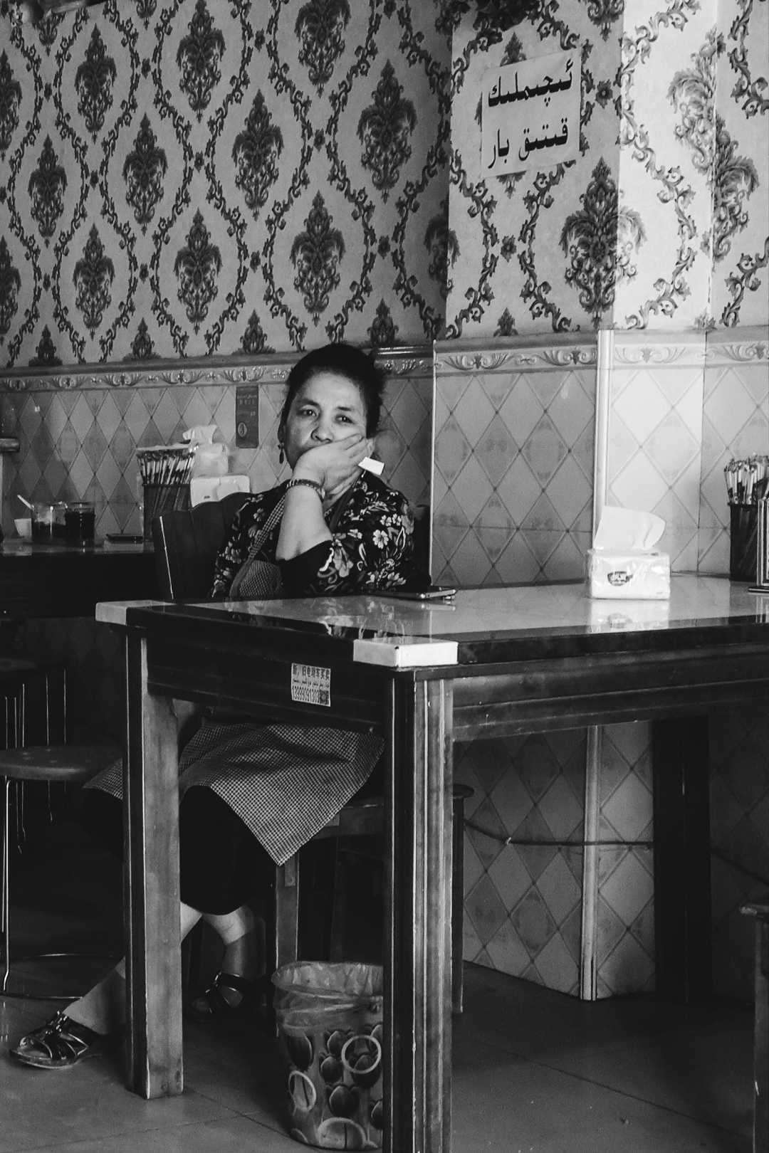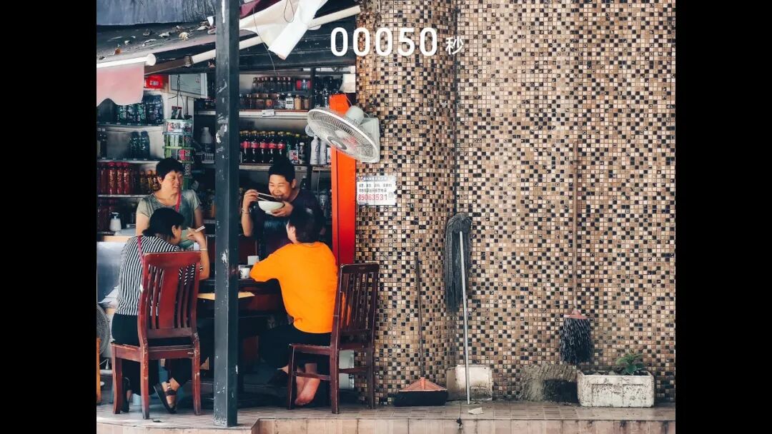 而对于不同职业的人来说,工作节奏成了他们最难以改变的东西。一位年轻的渔女,也闯入了镜头,正值休渔期,她将在这段时间里整理编织渔网,然后等待下一个开渔期的到来。开着一家羊肉粉店的老板娘,生活的周期以天数计算,到了中午,饭点过去,生意也接近尾声,她如期坐下休息,望向街边的人群,成为作品《像往常一样的午后》的女主角。