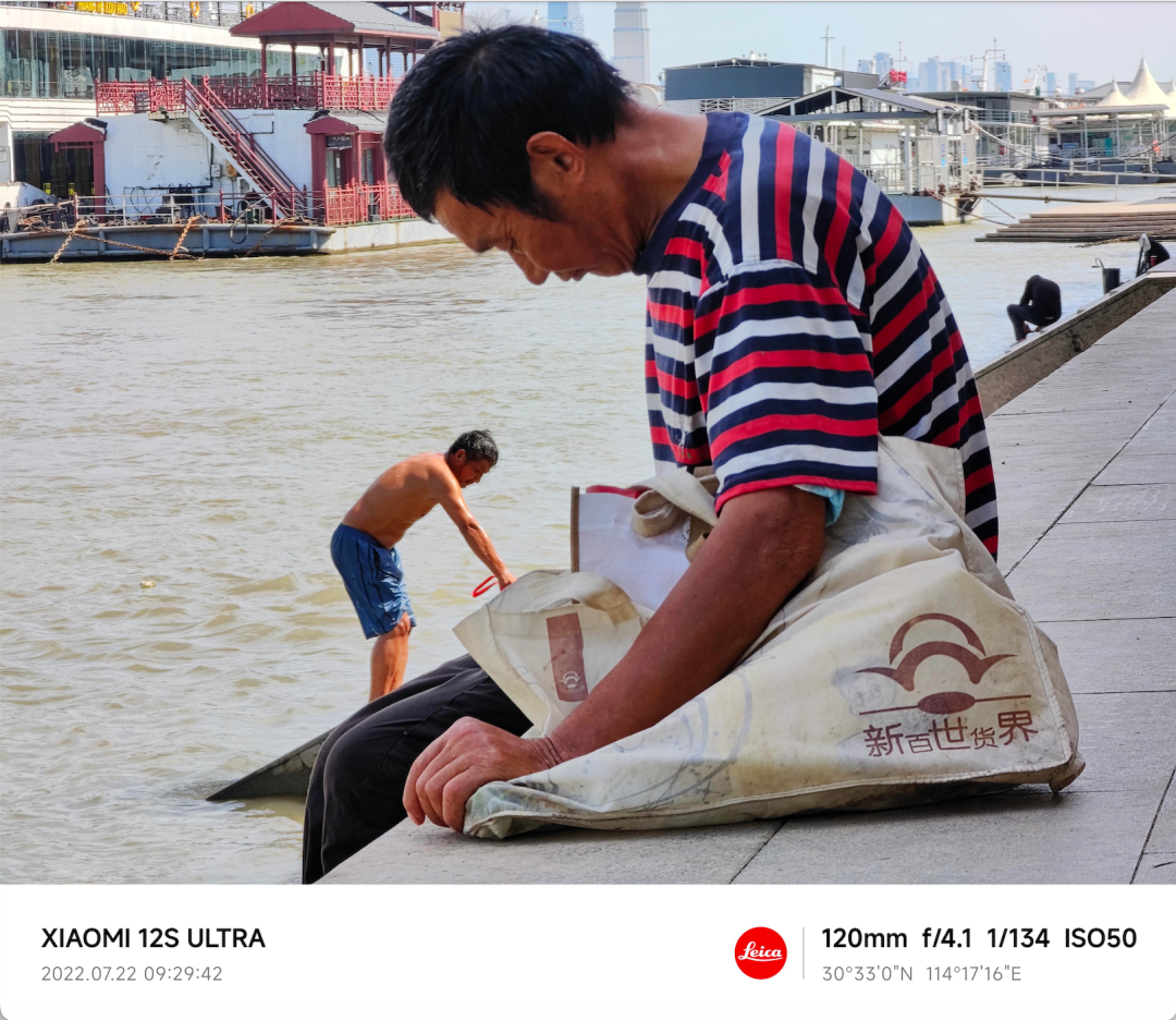 一个生长在江边的武汉人,在日夜奔涌不息的长江里,寻找到了属于他的确定性。他的照片,几乎都是在江边漫步时拍下的。镜头里,总是有坐在江岸边阴凉处打盹儿的人群,或者在凌波门跳水的游泳爱好者,他已经习惯这一切。拍完了,他也跟着席地而坐,满眼都是江波,他说,这样的放松感,总会让他忘记烦恼与疲惫。