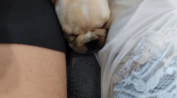 5月,成都处在封城阶段,刚刚开起个人摄影工作室的朱桦,已经好久没能开工了。有的时候,他也会焦虑,到底什么时候能有收入。是刚刚带回家里的一只小法斗治愈了他,忙着给小狗喂食、陪小狗玩耍的间歇,关于生活的烦恼总能被抛诸脑后。有一回,朱桦和女朋友坐在沙发上聊天,才几个月大的小法斗,颠颠地跑过来,睡在了两人的腿间,看着小法斗憨态可掬的样子,朱桦感觉到活在当下的幸福。