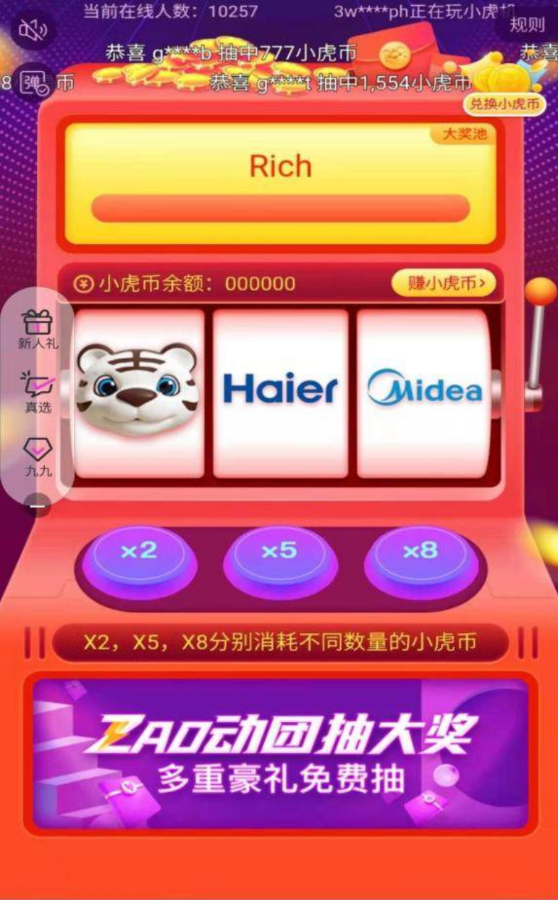 ▲ 小虎机抽奖页面。图 / 网络