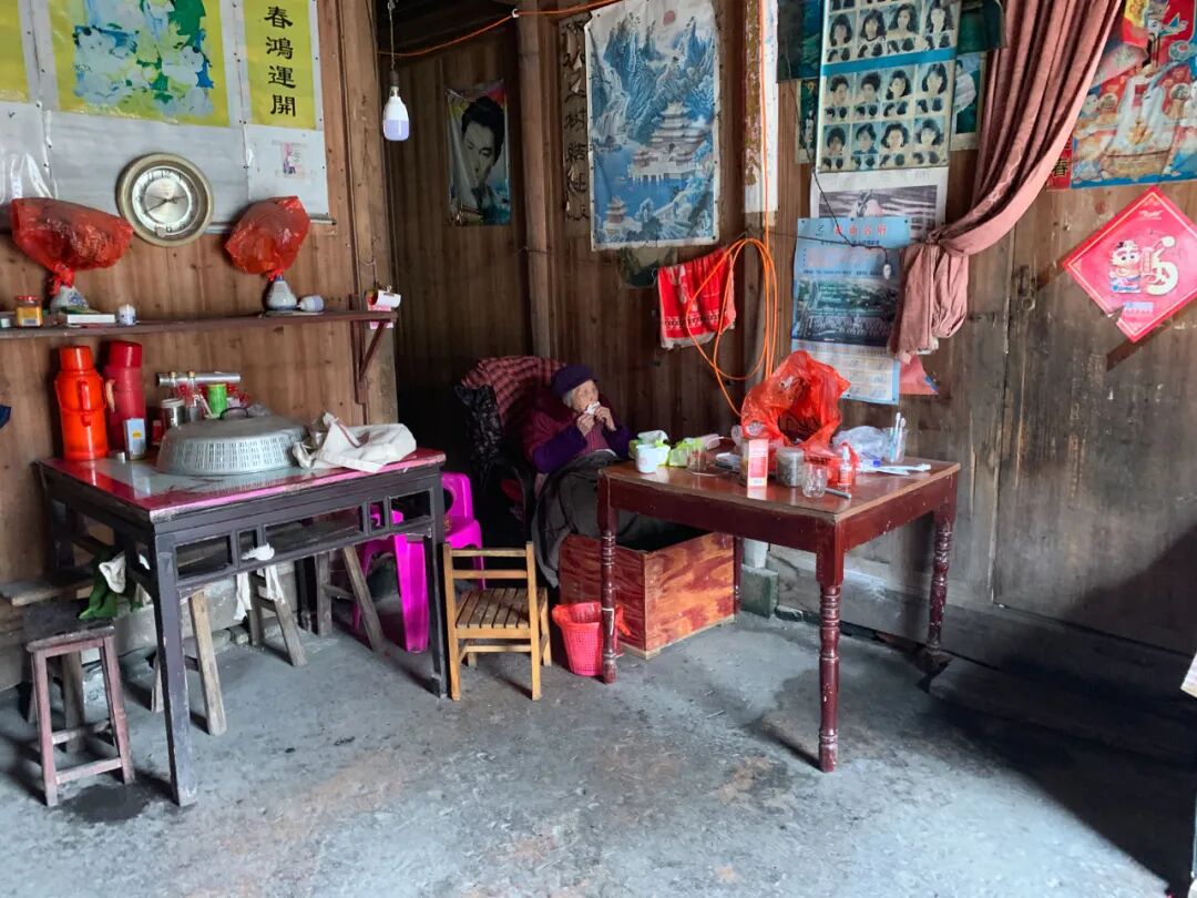 老屋里,住着全村最老的老人,是一位独居的老太,如今已经95岁。丈夫去世多年后,她也变成孤零零的一个人,老到无法再出门。曾经做过厨师的儿子住在她隔壁,每天送去一日三餐。
