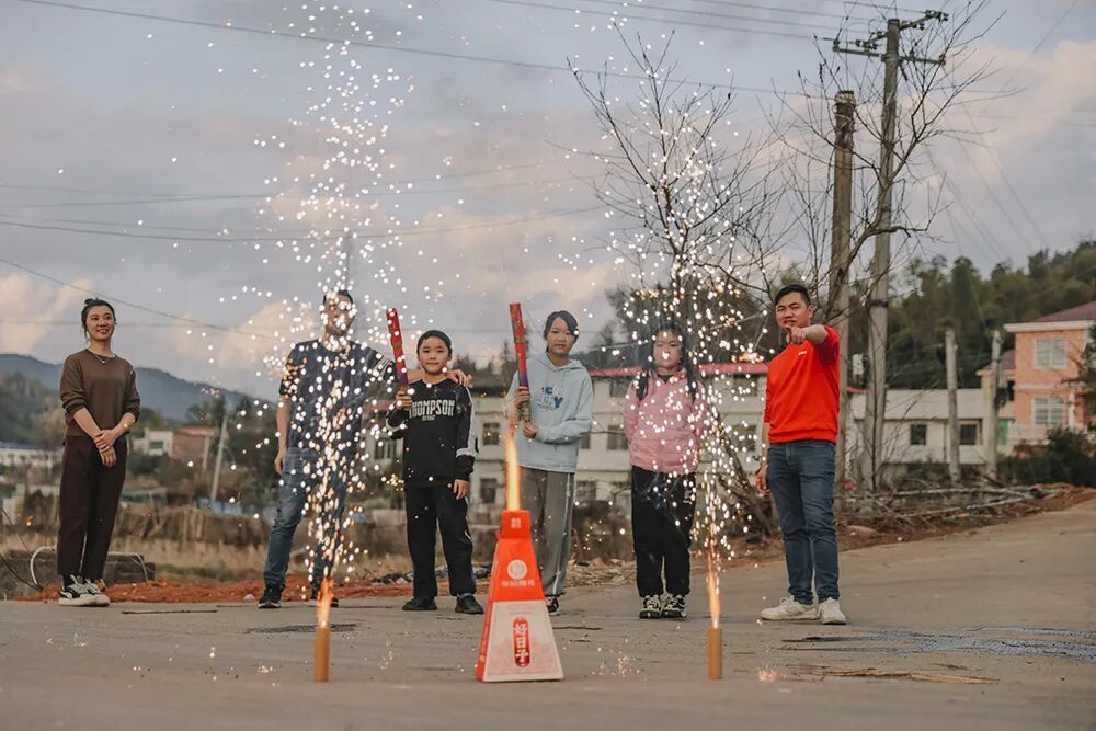 杨婷从小听着点火后的砰啪声长大。如今她自己成了家,做了母亲,将这个仪式传承了下去。记忆中最鲜明的,是爸妈的衣服上都沾染着一股微微刺鼻的、像鸡蛋放臭了似的硫磺味。