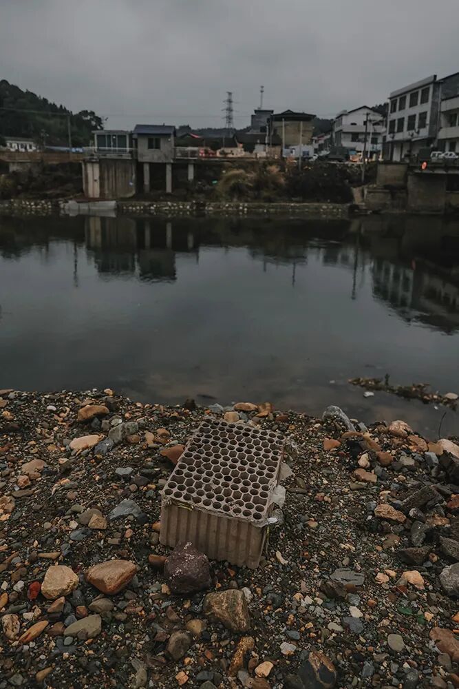 ▲ ⼩河边刚刚放掉的烟花纸壳。