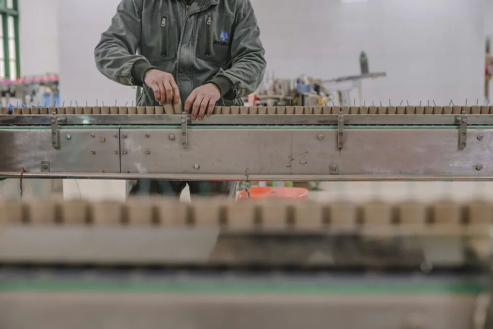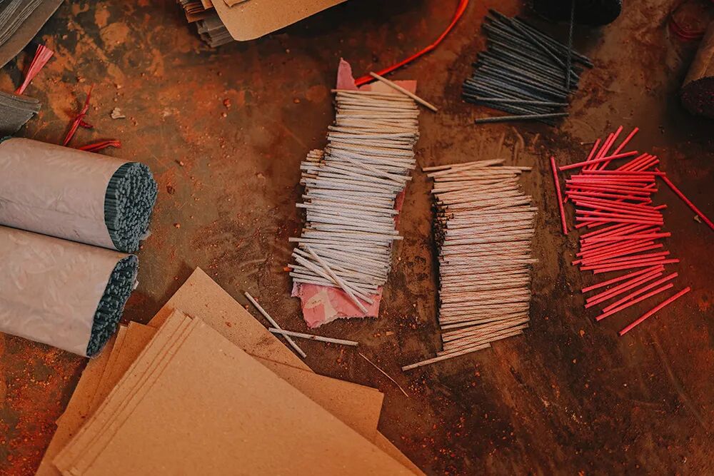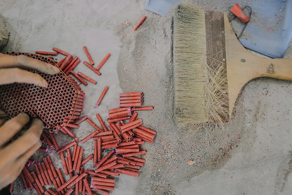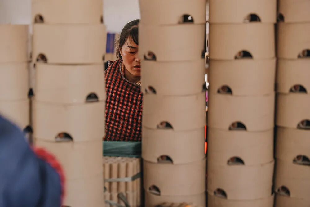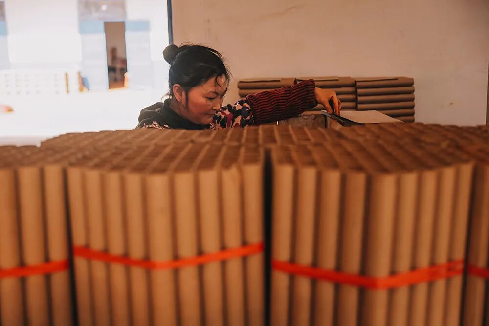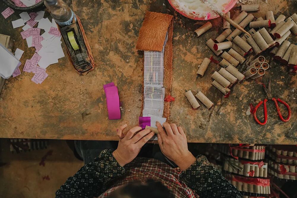 ▲ 烟花工厂,工人们批量生产纸筒。