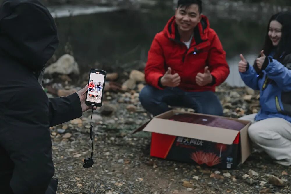 ▲ 何晴光正在拍摄烟花视频。