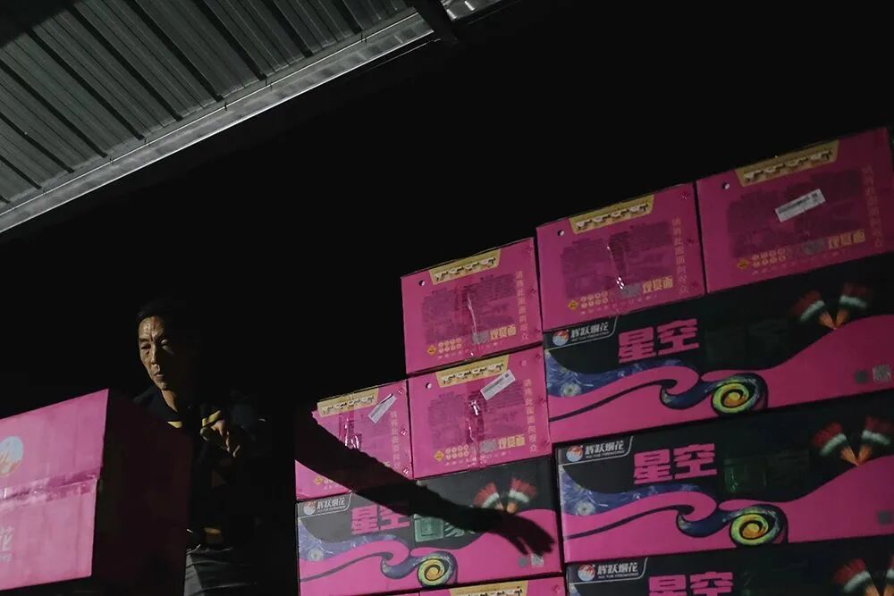 何晴光与杨婷有时候会一起去烟花厂拍短视频。印象中,烟花厂的仓库永远堆得满满当当,存货足以卖到过完年。工人们大年初八再开工,生产新一年的订单。