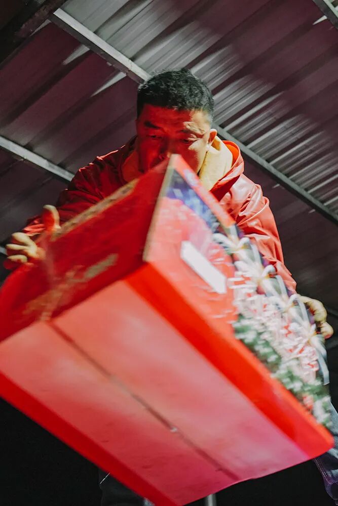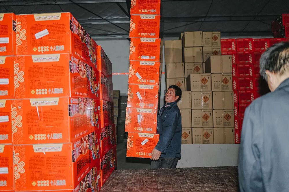 但在今年,离过年还有半个月,仓库里的货就搬空了,只有角落堆放着几摞纸箱,其余的烟花一箱箱被运上防爆车,开往山东、内蒙、辽宁这些“禁放令”放宽的省份。他在烟花厂上了九年班,没见过这般景象。