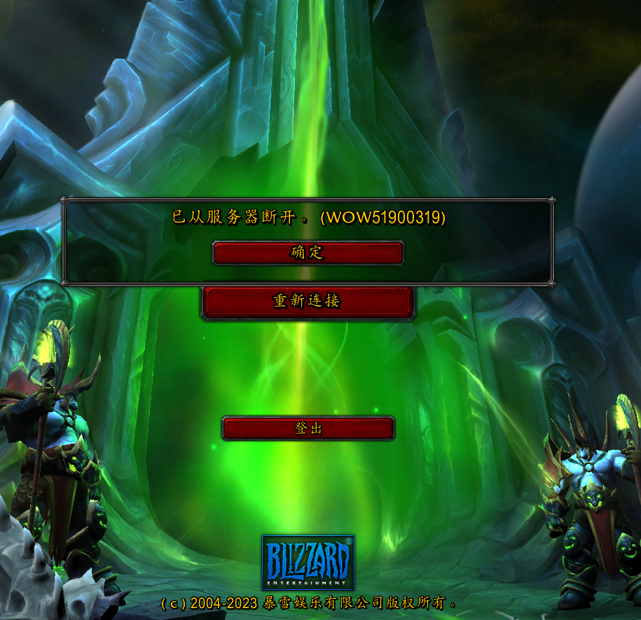 游戏画面出现了几秒的卡顿,站满人的屏幕,瞬间从彩色变为散发着幽绿光芒的登陆界面。