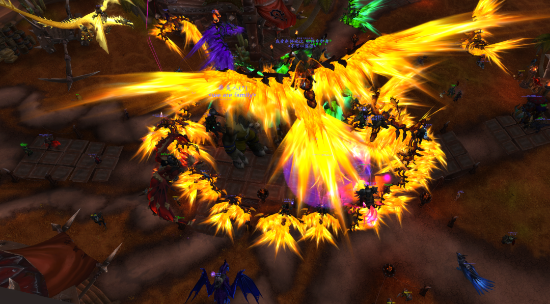 徐亦然走入部落的主城奥格瑞玛后,力量谷广场已经聚集了许多玩家。不远处,他望见火红一片,十几个玩家骑着奥的灰烬,悬在空中,围成一个燃烧般的火圈。