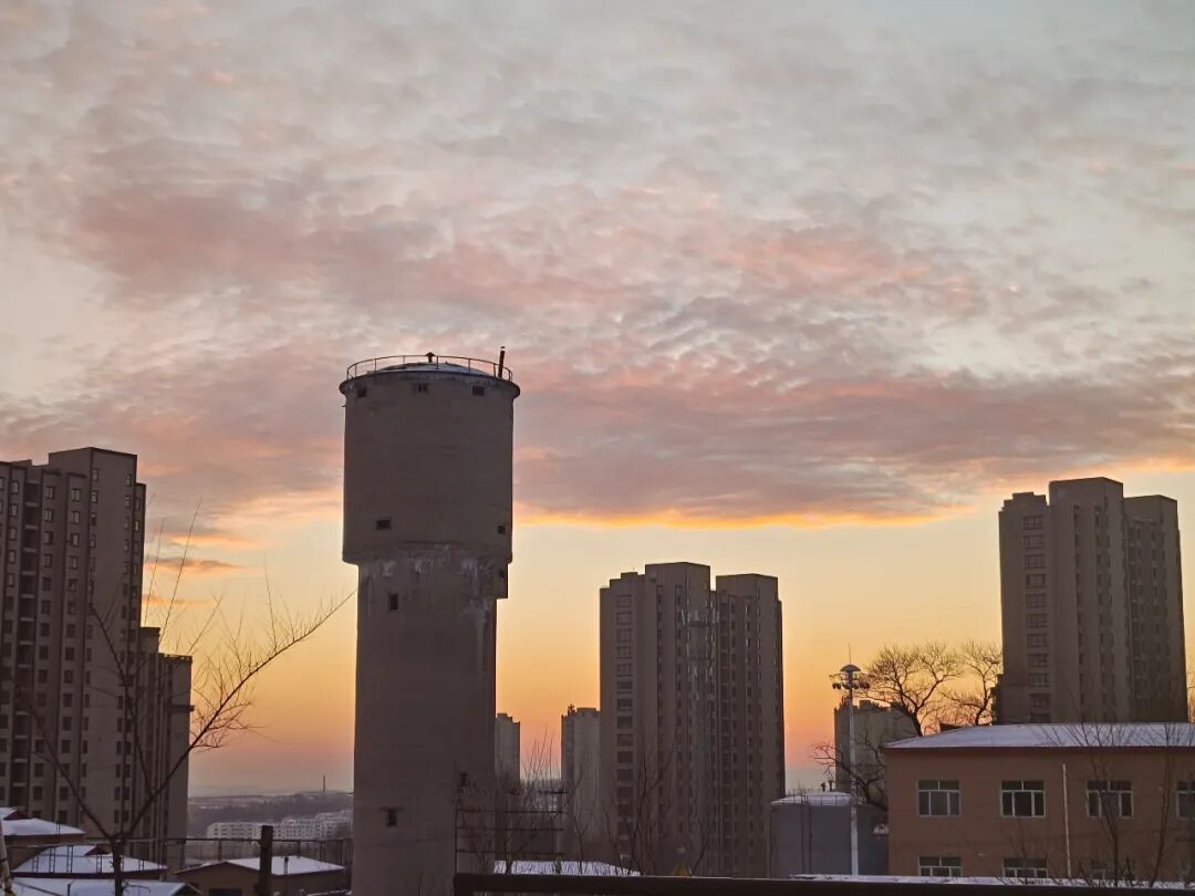 她形容自己在鹤岗度过的第一个冬天,“是有生以来最满足、最安心的一段时光”。趁着严寒彻底降临前,她走遍了鹤岗的天水湖、五指山、麓林山公园,看见许多北方树木的枝干直愣愣地插向天空。她最喜欢的,是鹤岗的晚霞,下午四点,抬头就能望见淡粉色、橙黄色、绯红色的云朵大片大片铺在天际,没有高层建筑物遮挡,眼前是东北老工业基地遗留下来,不知用途的巨大塔状物。