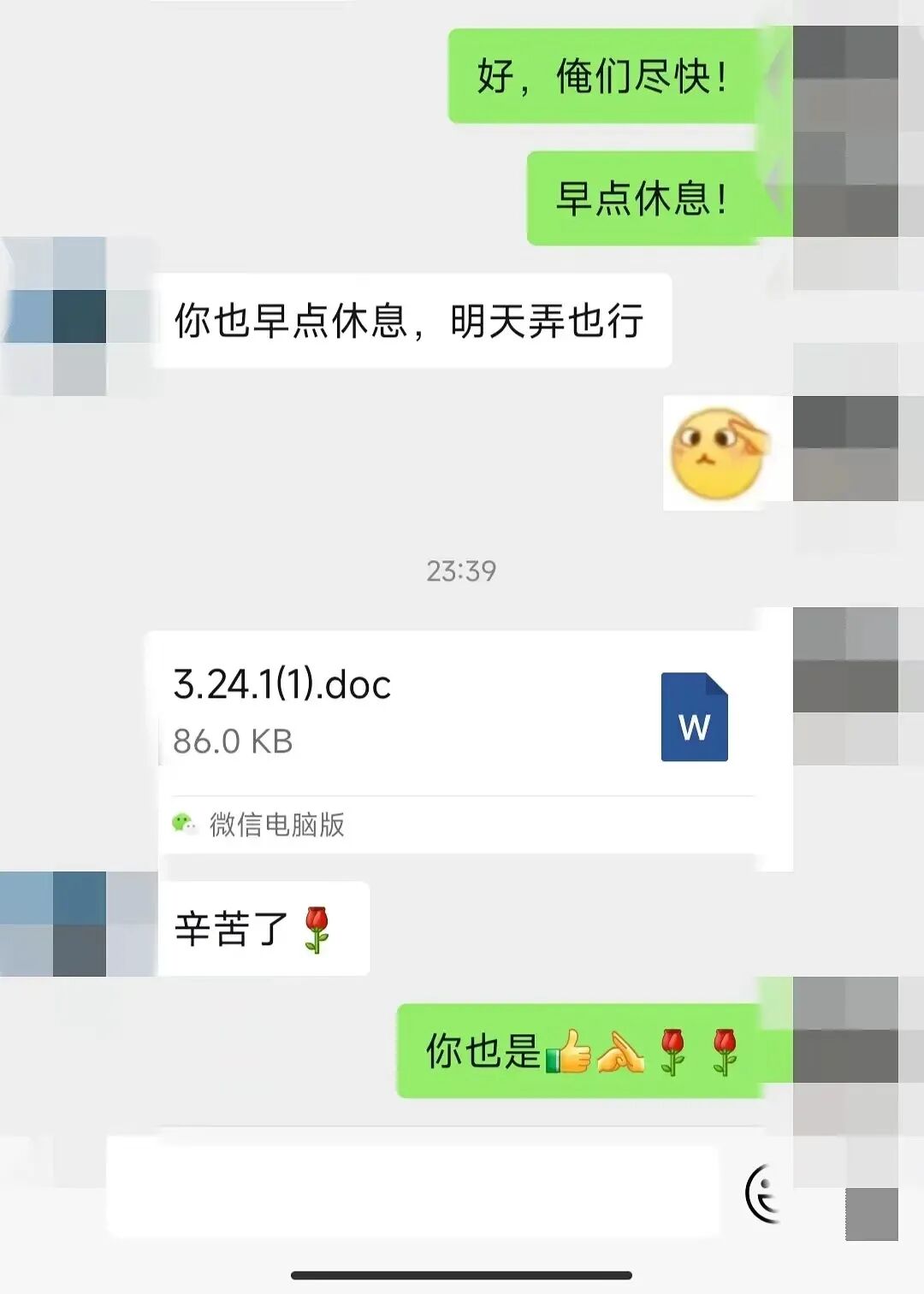 有一次,单位系统成功上线了新板块,整个部门忙了快1个月的任务初步结束,主任再次在群里发“辛苦了”,深得主任重视的员工,立马回复:“您这两天也辛苦啦,剩下的我们这边处理~”