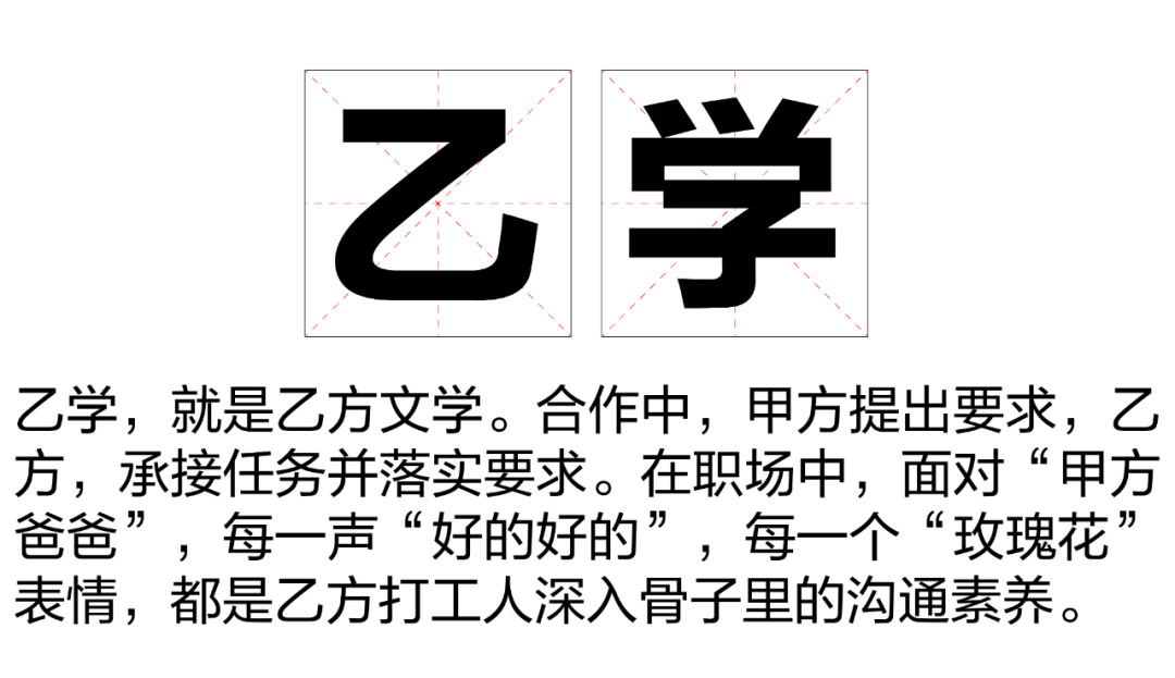 顾名思义,乙学,就是乙方文学。每一声“好的好的”,每一个“玫瑰花”表情,其实都是乙方打工人深入骨子里的沟通素养。