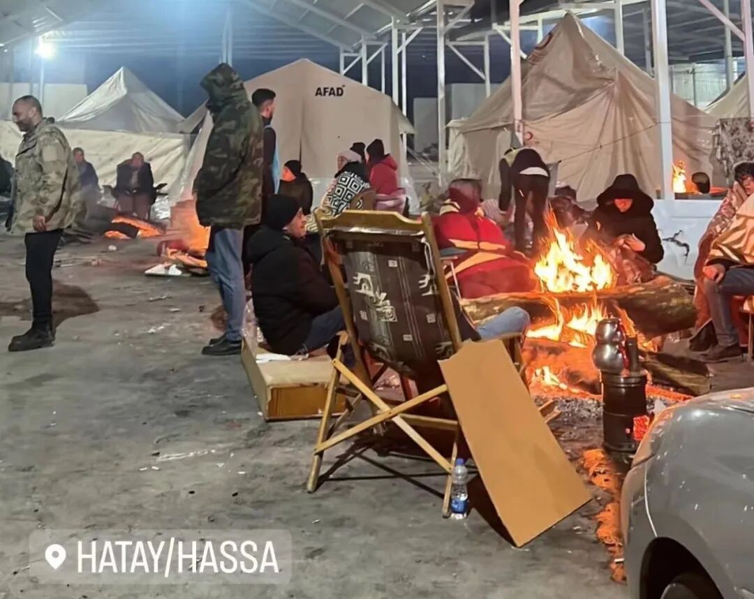这是我搬到哈塔伊三年以来,遇到最冷的冬天。村子里的人们大多都没了家园,他们挤在红十字会发的帐篷里,一顶帐篷里,最多挤了二十多个人,人们彼此依偎取暖。没有帐篷的,就在室外烧火取暖,身上盖个薄毛毯,有人干脆在凳子上睡着了。
