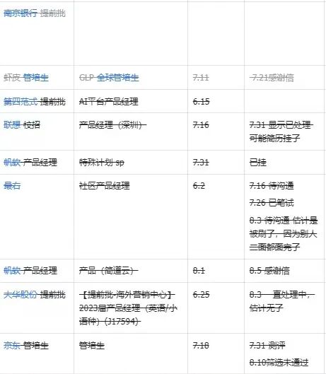 他列了一张Excel表格,将所有投递过的岗位记下来。直到现在,很多家进度都还停留在“投递”状态,再无下文。也有一部分进入了一面、二面甚至HR面,但两个多月过去,结果都是石沉大海。