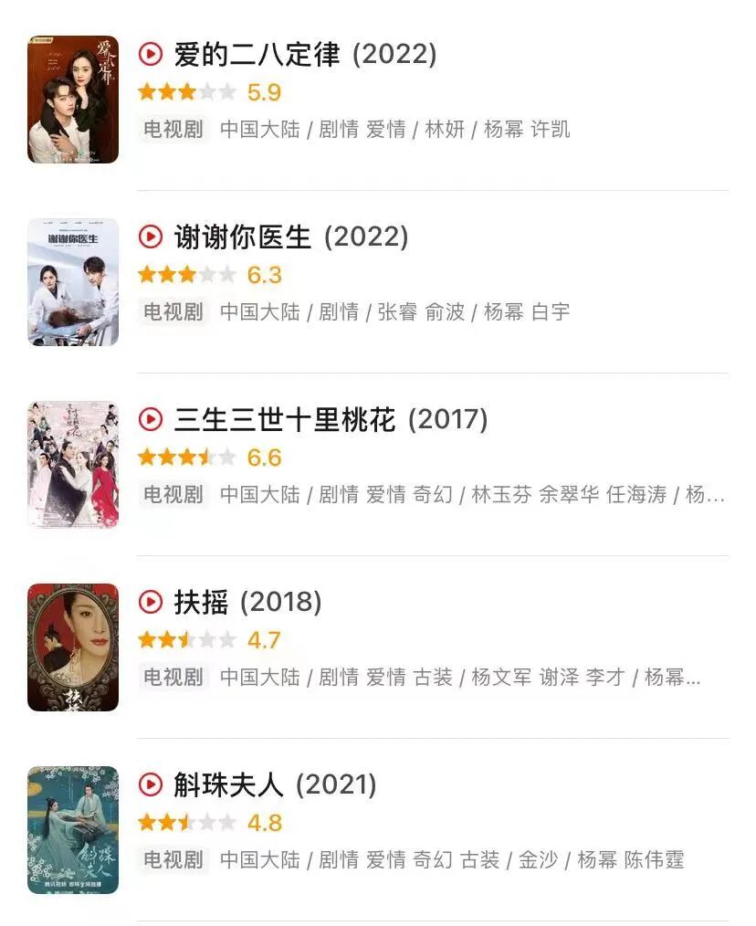 ▲杨幂主演的电视剧评分。图 / 豆瓣