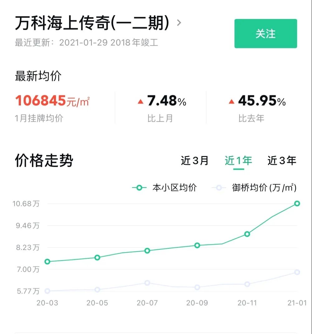 位于浦东的御桥板块一直是中环线上的房价洼地,原因是附近有高压电线和垃圾焚烧厂,在楼市论坛里收获了外号“高压线传奇”。9月中,海上传奇的业主群里一片沸腾。一单以7.4万单价成交的房子让业主们看到了希望:“都给我挂,挂到8万5。”如今该小区还在平台上挂牌的6套房源,价格最高已经到了12万。靠着对口的学区和业主齐心协力,“高压线传奇”也翻身了。