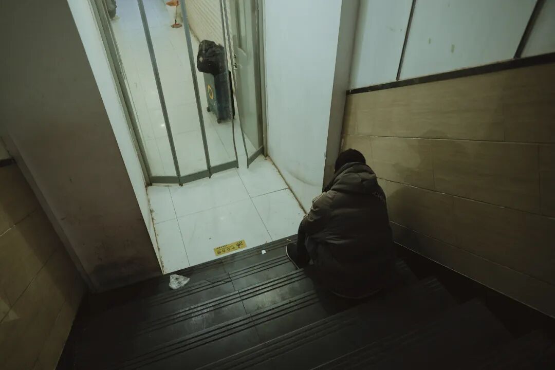▲ 男孩在7天酒店的台阶上睡着了,这家酒店一晚的费用是203元。