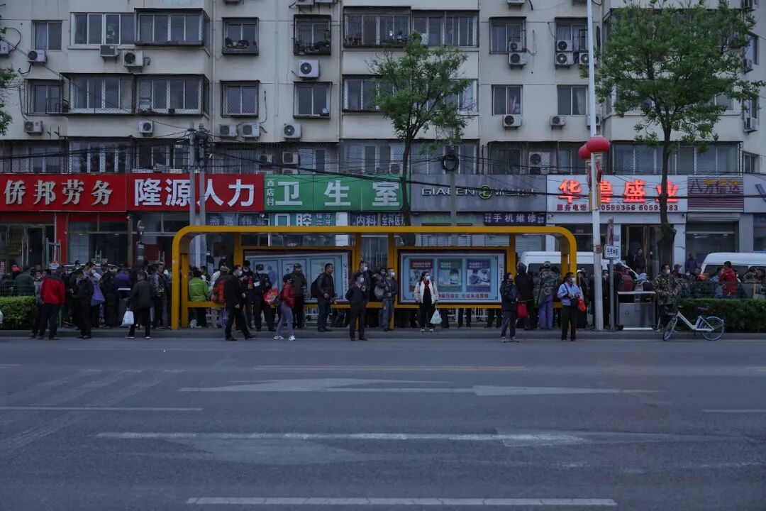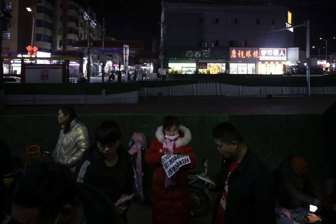 马驹桥的时间从早晨4、5点开始,这个点的天空已经是微蓝色,人们从附近的城中村里走出,又分成两批散去。一批是昨晚已经找好工作的人,他们需要坐上最早一班的公交车,另一批人准备在当天找工作,他们要去马驹桥商业街尾的一条十字路口。
