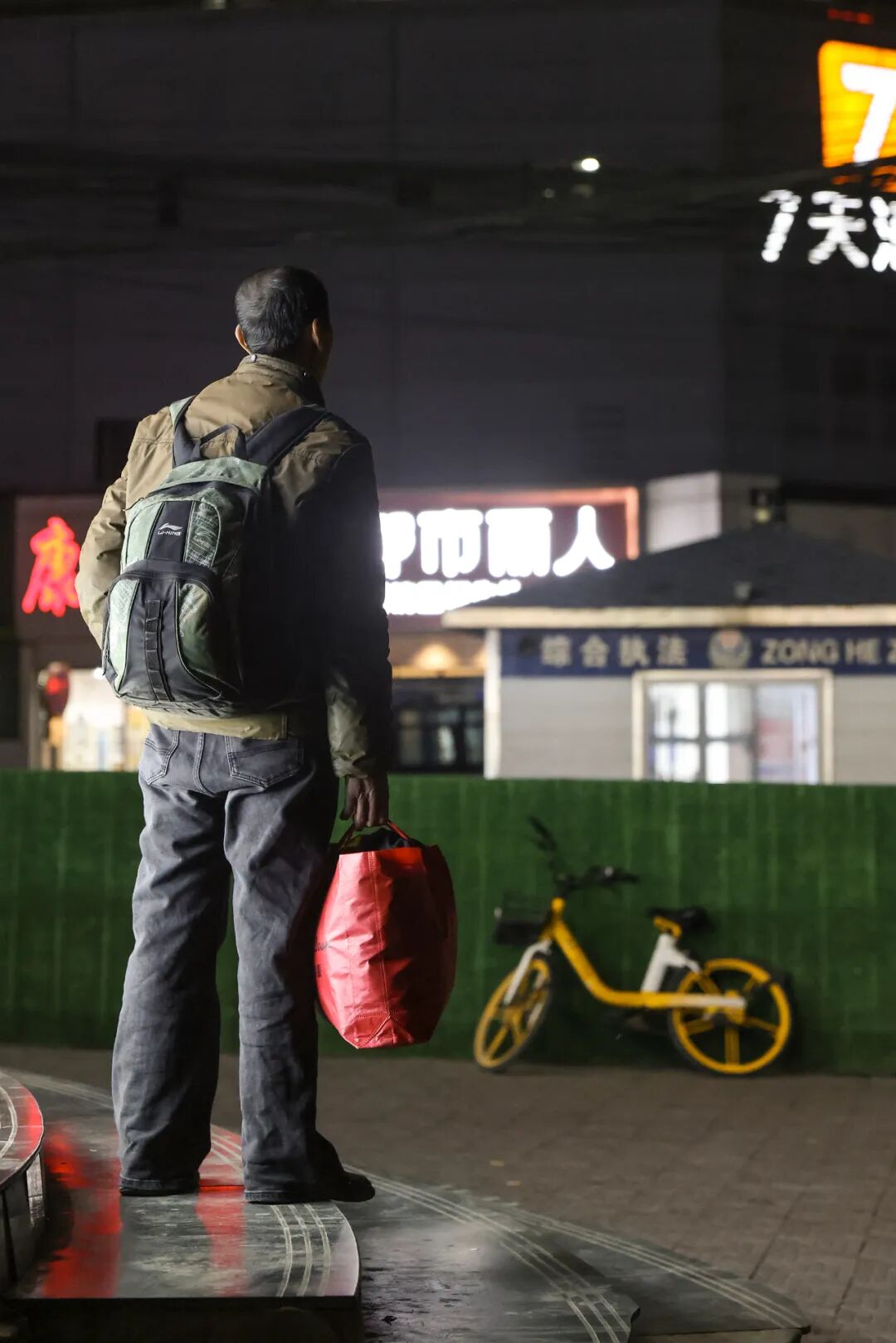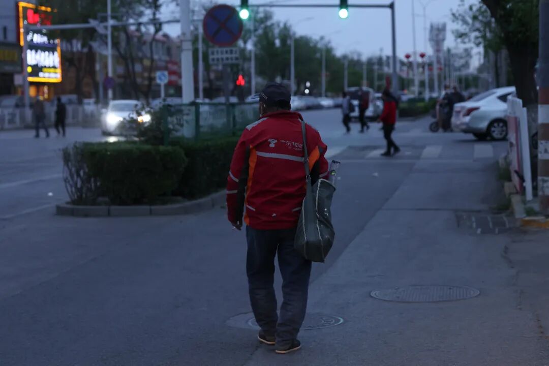 ▲ 一个准备去上班的日结工,穿着京东物流的红色外套。