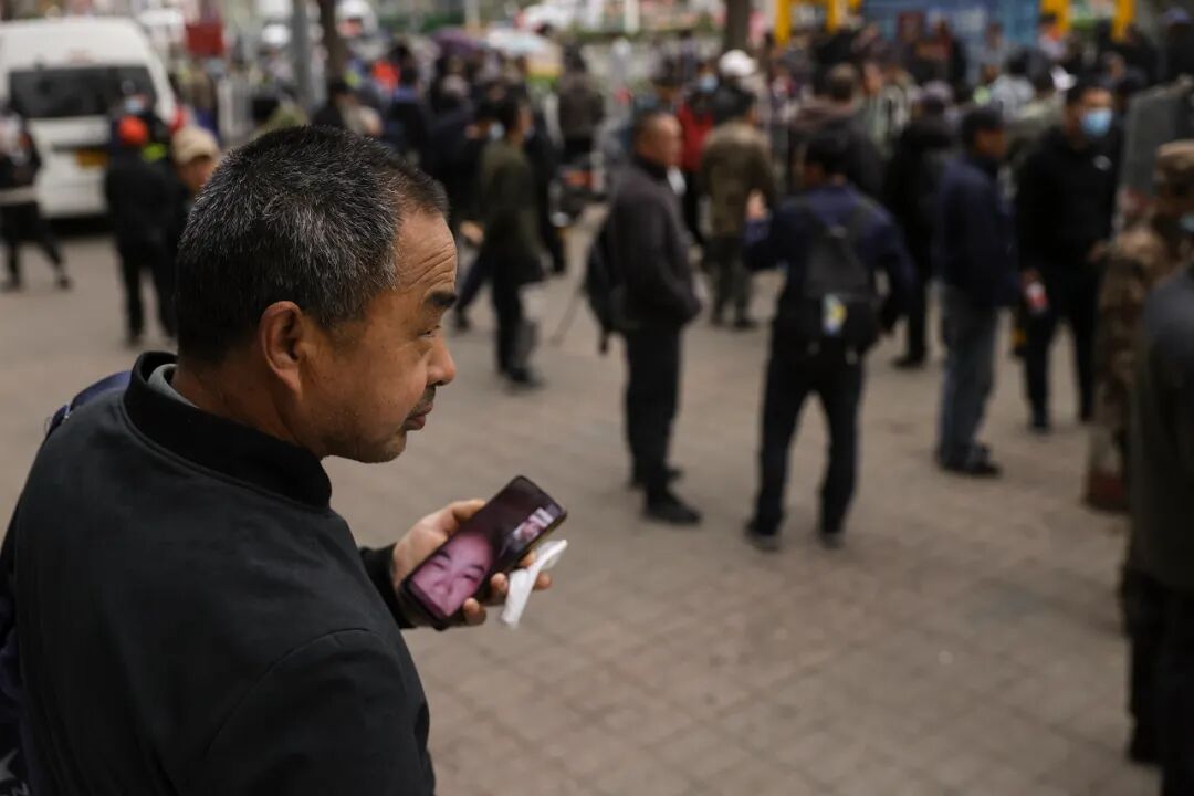 ▲ 早上6点不到,一个男人正在和老家的妻子视频通话,妻子刚醒,背景还是一片漆黑。