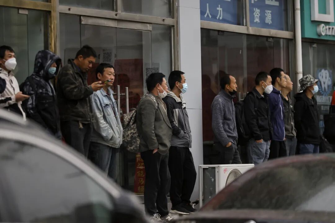 北京的清晨有风、微冷。早前刚刮了一阵沙尘暴,下雨了,只是落下来的都是泥点。一个上了年纪的工人在角落抱怨,特意来得早,结果找了一圈也没人要。旁边一个男人也郁闷,他倒不是年龄问题,只是手指在上一份工里受伤了,被机器压的,简单裹了层纱布,中介说“这不行,没法干活了”。