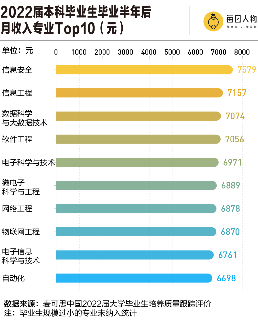 实际上,在一些技术性行业,本科生和硕士,待遇差别并不大。打开脉脉、BOSS等求职网站,会发现在游戏、算法这些存在技术壁垒的岗位,开给本科生的工资并不低。比如2022年的专业收入榜上,技术类的岗位,本科生的收入基本能达到月薪7000元左右,一部分非技术岗位给硕士生开的薪资,也差不多是这个数。