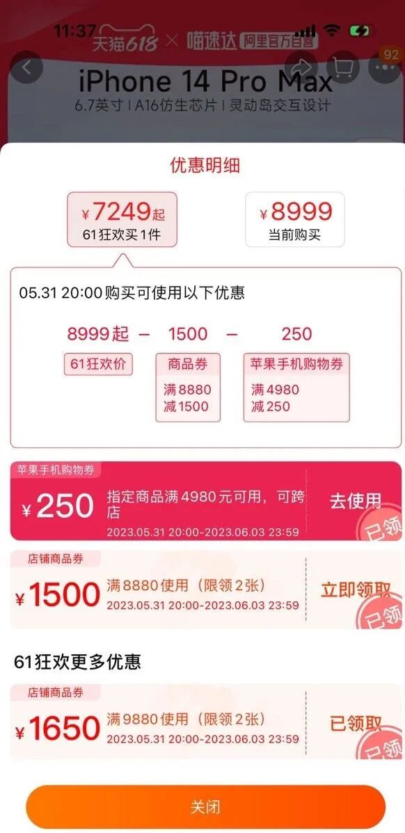 ▲ 淘宝iPhone购买页面的优惠券。图 / 淘宝