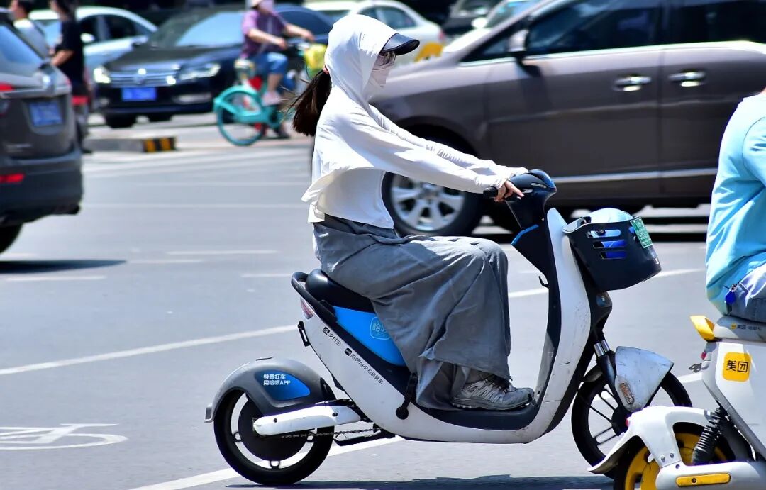 6月的上海,最高温已经达到了40度。这样的温度下,太阳落在身上,有强烈的刺痛,电动车的座位,没一会儿,也被烤得发烫。为了躲阳光,在上下班时的街头,能看到很多“全副武装”来防晒的人,其中有一个,是95后庞烁。