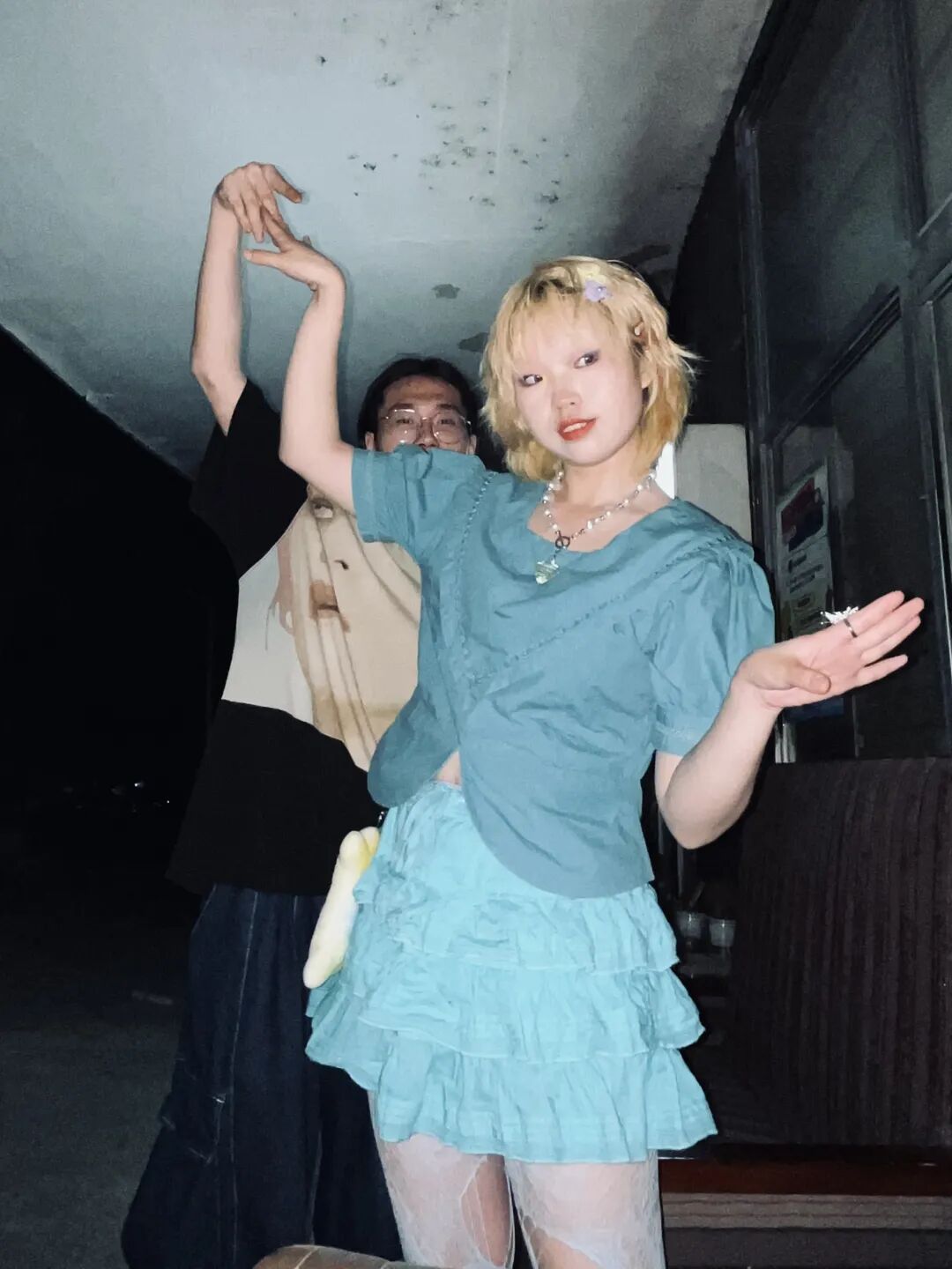 这是她第一次尝试往身上堆这么多颜色——一件牛油果绿的抹胸加开衫外套,外加一条芭比粉的裤子。她打开音乐App,切换到了告五人乐队的歌曲,提前开始了一个人的狂欢。