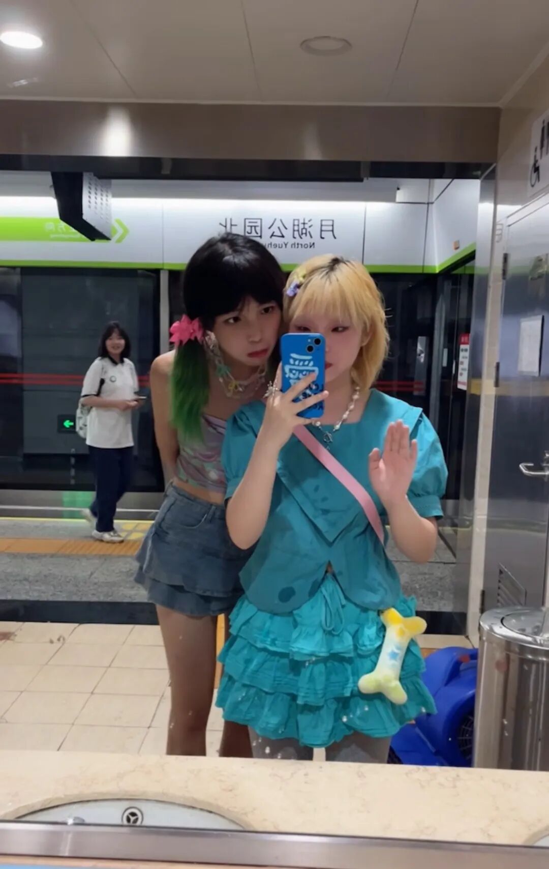 几天前,父母来北京看她,母亲看到了她挑染的发色,照例抱怨了两句。在等候地铁的过程中,她看到对面站台上,恰好站着一个染着薄荷绿发色的女生。在人群中,一眼就能看到她,那么亮眼,那么动人。