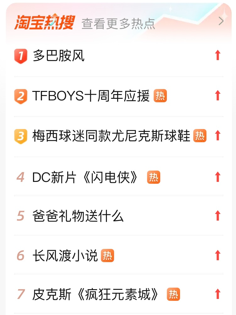 ▲ 淘宝热度榜单。图 / 淘宝截图