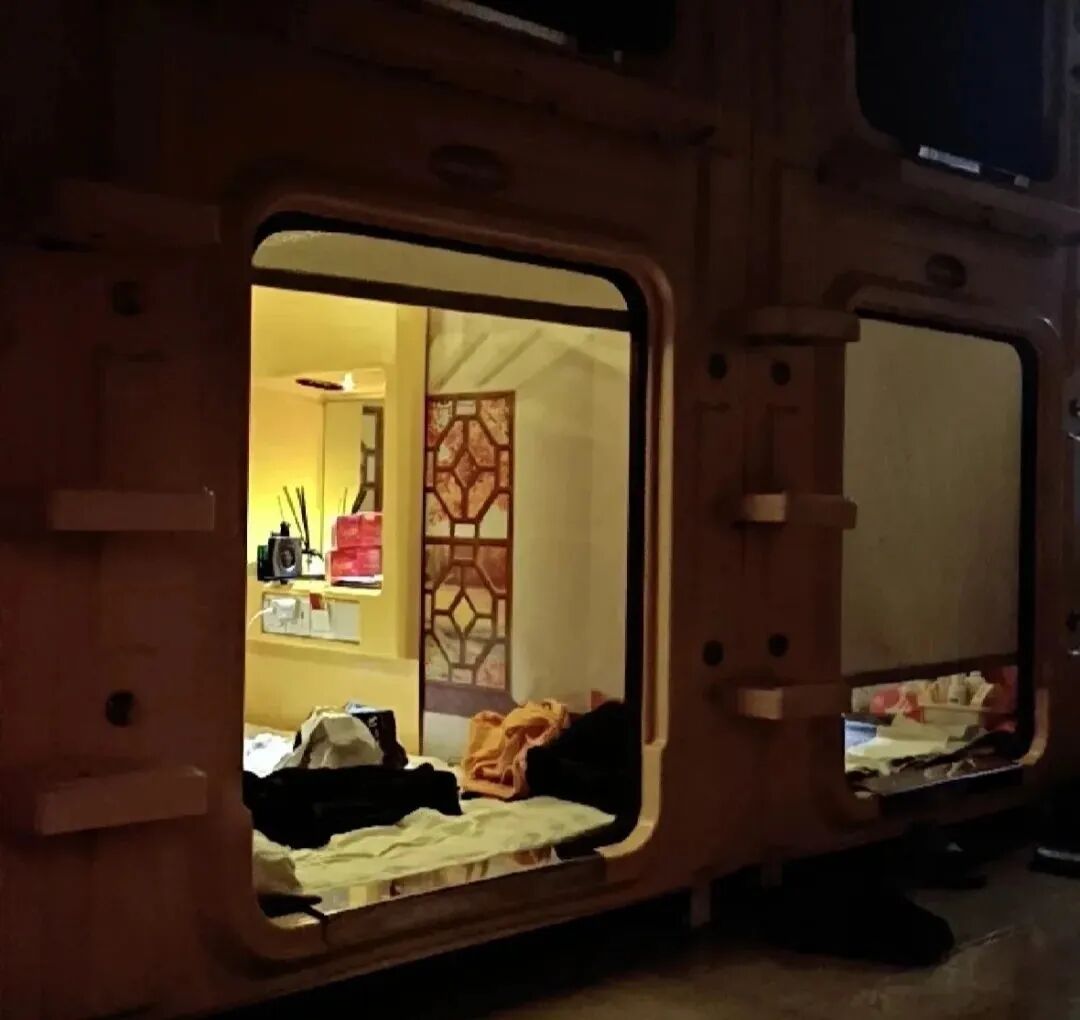 第一次见到太空舱,林华是满意的。起码他觉得,“床是正常大小,跟大学宿舍一样”。以他当时的条件,也确实无法要求太多。钻进舱后,他还看到右侧墙面嵌着床头灯、镜子和一个插座,插入舱卡即可使用。
