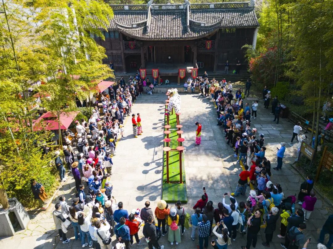 ▲ 溧阳游客南山竹海内观赏舞狮表演。图 / 视觉中国