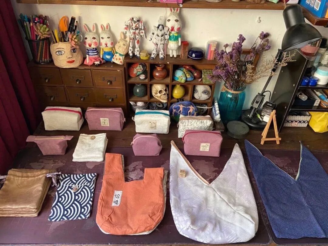 ▲ 赖宝用废弃布料做的帆布袋和收纳袋。图 / 受访者