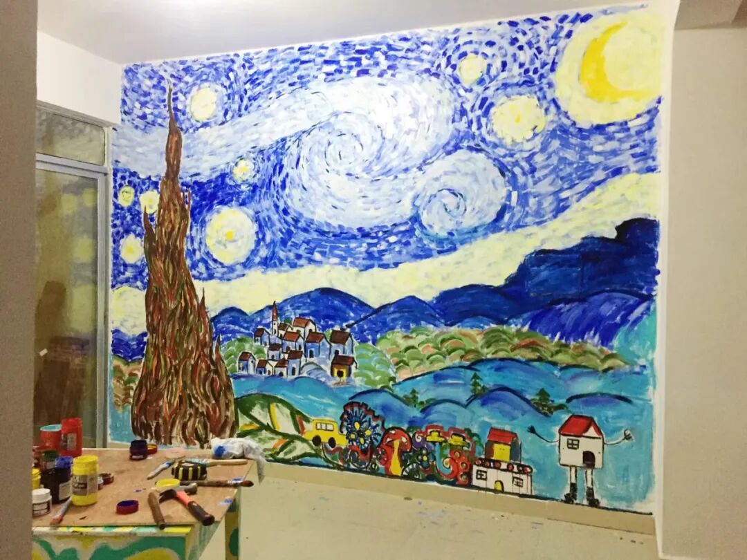 ▲ 赖宝自己画的《星月夜》。图 / 受访者