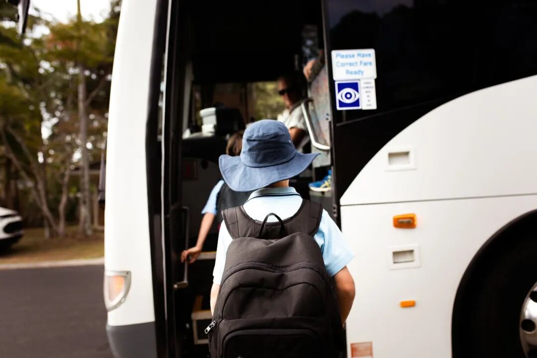 ▲ 孩子们排队乘大巴出现。图 / 视觉中国