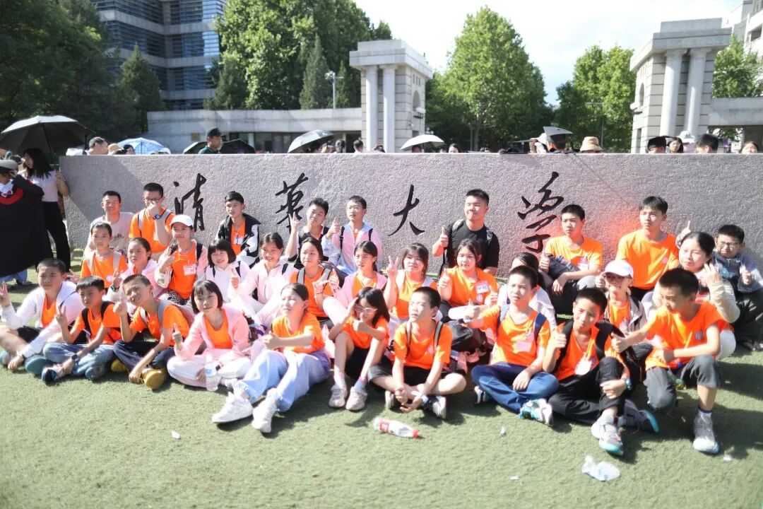 ▲ 研学团的学生在“清华大学”校名前留影。图 / 视觉中国