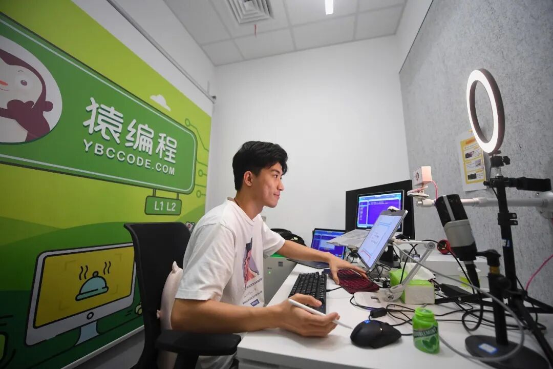 ▲ 2020年服贸会现场,在进行直播的猿辅导工作人员。图 / cfp