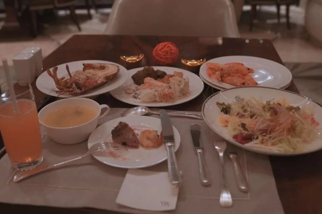 还有的饭店,虽然可以接受一个人来吃年夜饭,但座位是一个大圆桌,略微显得太冷清了。最后,我选了外滩边上的一个五星级饭店,那顿年夜饭有龙虾、牛排、佛跳墙、甜点,花了800元,又点了600元的酒水,总价1400元,结账的时候还付了15%的服务费。