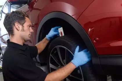 检查四个轮胎时,要寻找每个胎上有没有损坏的痕迹,有划痕是比较常见的,通常不是严重的问题,但如果车轮弯曲或有大的凹痕就需要维修或更换了。