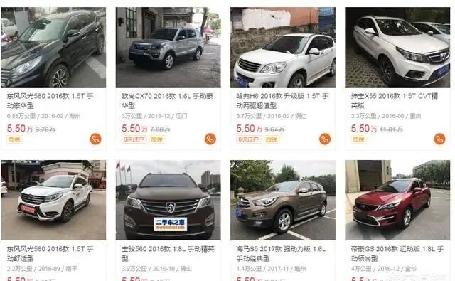 3年左右国产SUV,像帝豪GS、哈弗H6、瑞虎5、风光580、传祺GS5、宝骏560,5万出点头统统拿下,国产MPV宝骏730,也能买到17年左右的。