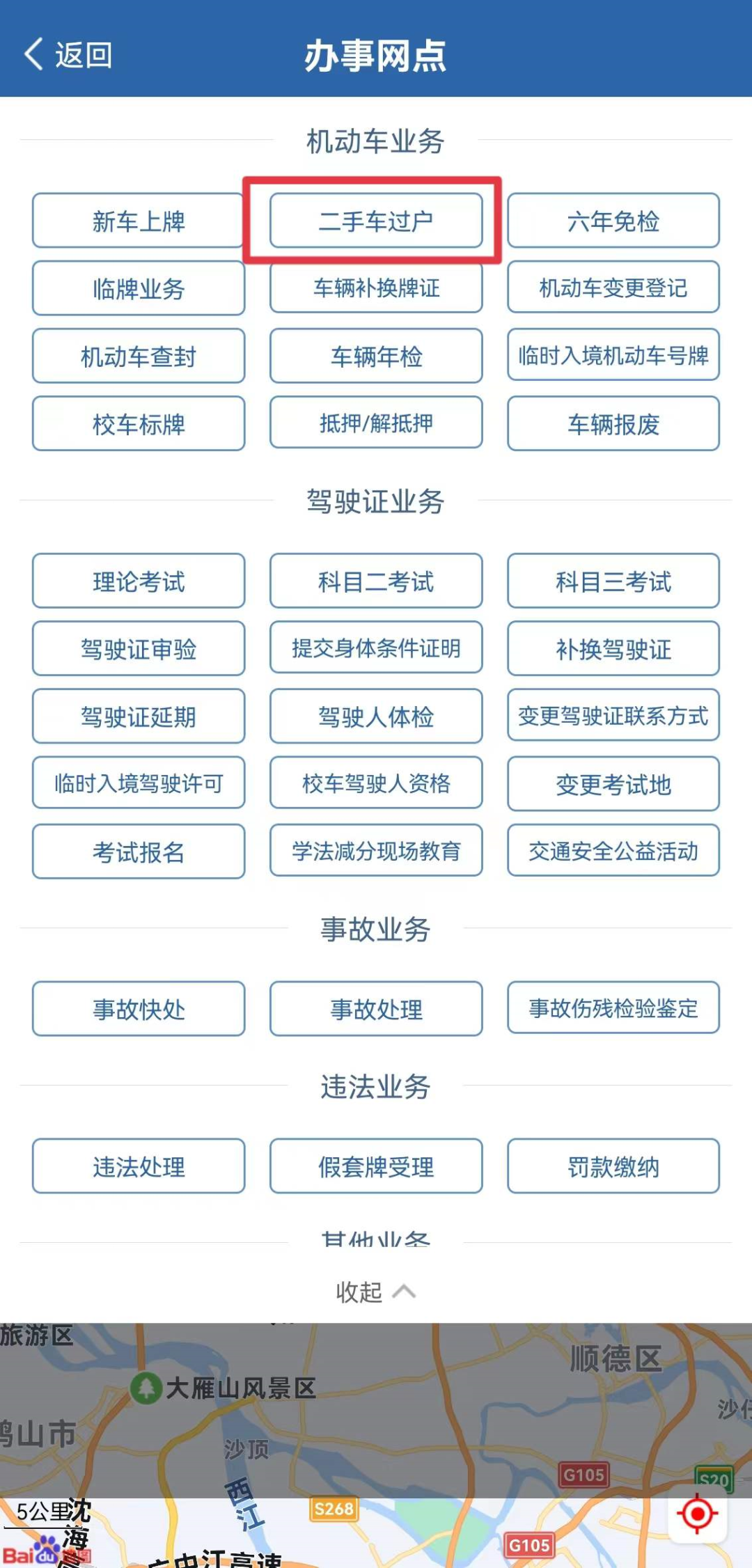 查看附近可以办理机动车